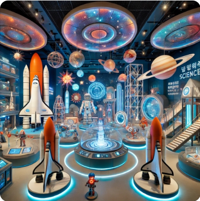로켓, 우주선, 천체 망원경 등 과학 콘텐츠가 꽉 차 있어 교육과 재미를 모두 잡은 공간입니다.