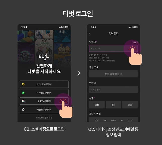 ‘티벗’ 앱 설치 후 간단하게 응모 가능!