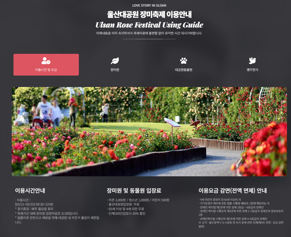 • 장소: 울산광역시 남구 남부순환도로 377 (울산대공원 장미원 일대)
