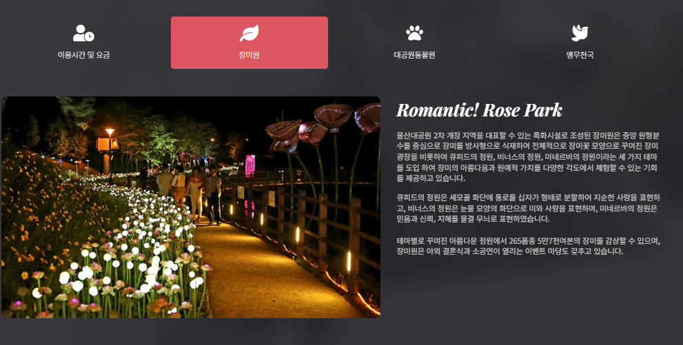 - 테마별 정원 구성: 로맨틱가든, 힐링가든 등