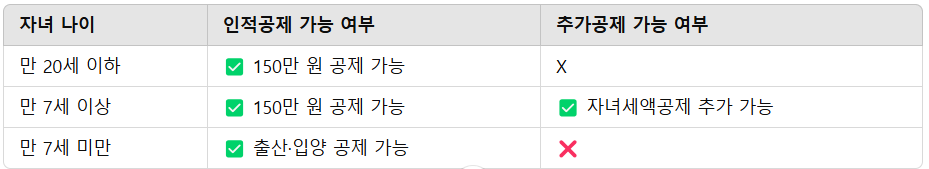 ✅ 자녀 공제 가능 나이: 만 20세 이하