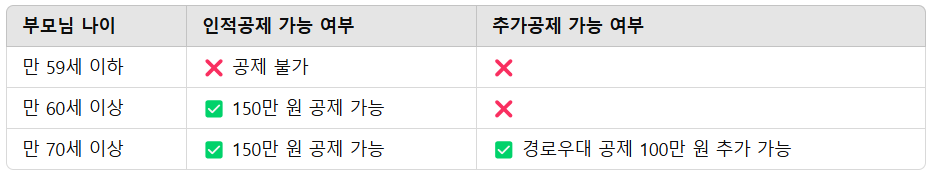 ✅ 만 70세 이상 부모님은 경로우대 추가 공제 100만 원 가능!