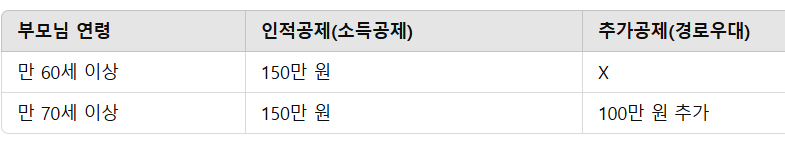 🔹 추가 공제: 부모님이 만 70세 이상이면 100만 원 추가 공제 가능
