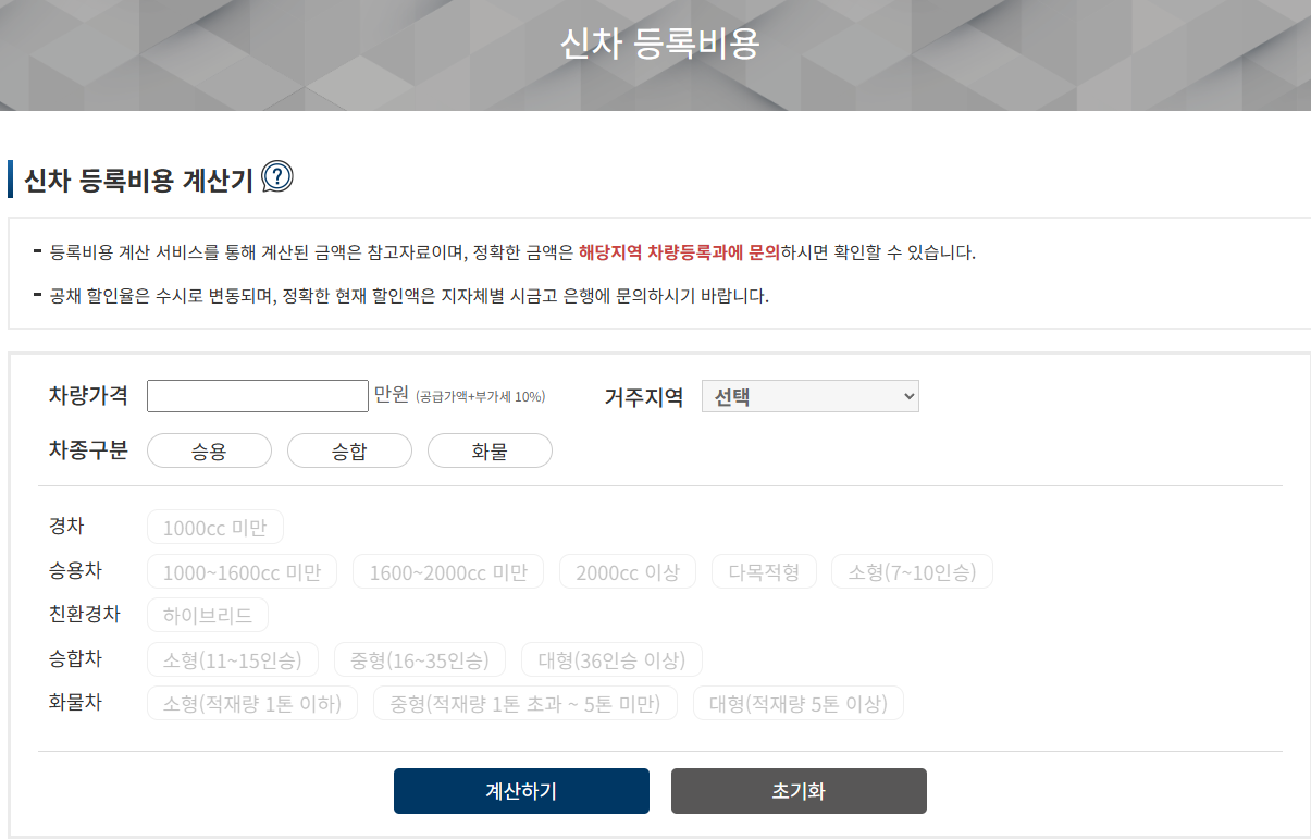 다음의 공식 사이트에서 정확한 자동차 취등록세 계산법이 가능합니다.
