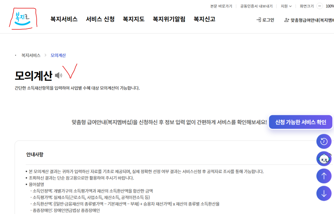 복지로 모의계산기 바로가기