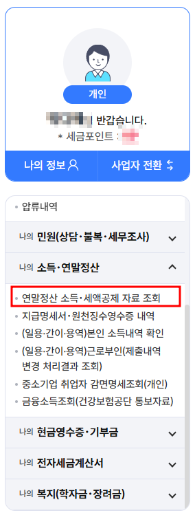 홈택스에서는 개인이 사용한 신용카드, 체크카드, 현금영수증 내역을
